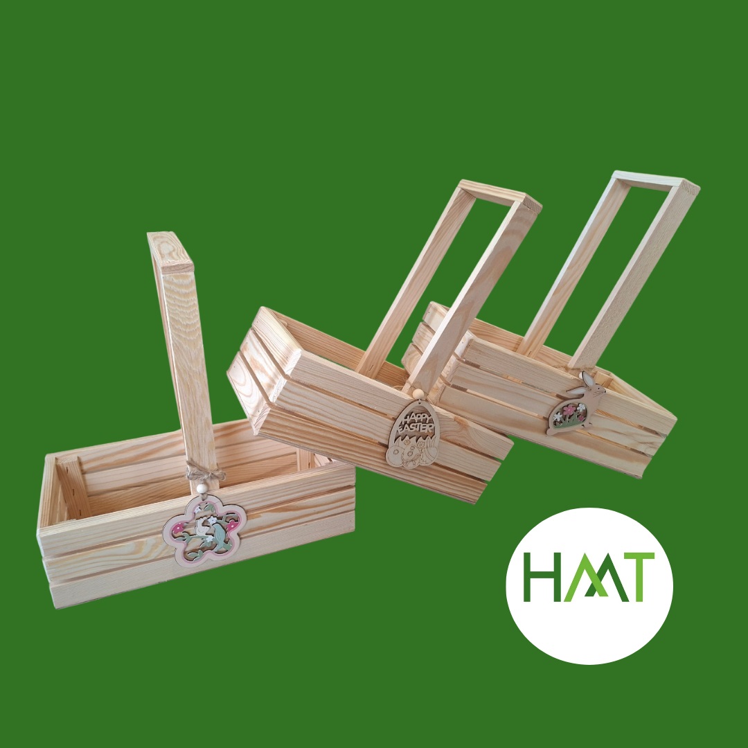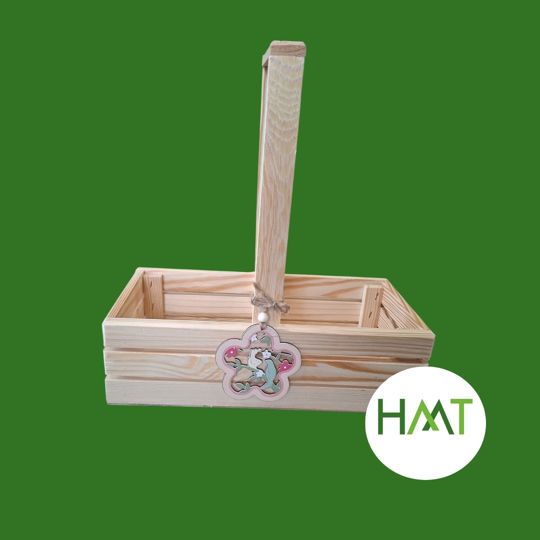 Piękny, naturalny drewniany koszyk z rączką, idealny na Wielkanoc, dekoracje świąteczne, prezent lub jako stylowy element wystroju domu. Wykonany z jasnego drewna sosnowego, dzięki czemu prezentuje się bardzo naturalnie i pasuje do wnętrz w stylu rustykalnym, skandynawskim lub boho. 🌿